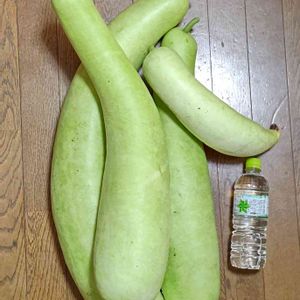 本日のお花? 【 ユウガオ 】 花は撮影できず ユウガオの実です。 昨年は大豊作でしたけれど 今年は5本しか採れませんでしたよ。 これから 輪切りにして 桂剥きした後 干して かんぴょうを作ります。 自宅で作ると厚みがあって とても美味しいかんぴょうができますよ😁