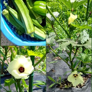 本日のお花 【 オクラ 】 雨降りの後久しぶりに せんぜ畑に草刈りに行くと 伸び放題の中に 黄色い大きな花が咲いていました。 取り忘れていた巨大なオクラの実カチカチに育っていましたよ😱