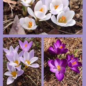 今日のお花、クロッカス🌸🌿😊 色とりどりで綺麗でした😃💜🤍🌿😃 🏷咲き始めのお花たち