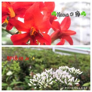 那須休み3 あかと白の綺麗な花が咲いてました😁 何という花なんでしょう?😁 でもとても綺麗☘️✨✨