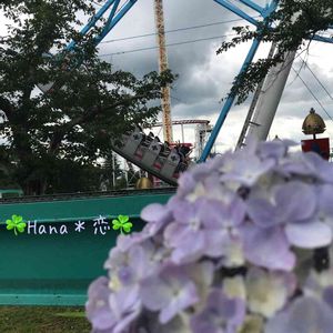 那須休み4 紫陽花と バイキング🎢 うす紫の紫陽花が咲いてました😆 楽しい遊園地で 紫陽花と一緒に私がみんなの笑顔を見守ってるようでした😁🎢✨✨✨