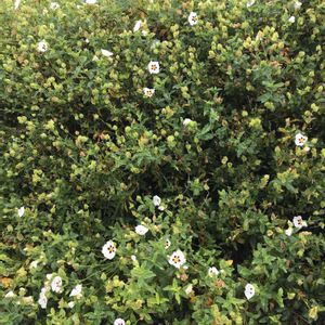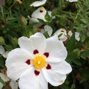 キスツス ラダニフェル ハンニチバナ科ゴジアオイ属(キスツス属)の常緑低木 原産地 地中海沿岸 全体的に独特な強い芳香を放つ樹枝状物質(ラブダヌス)に覆われる。 下痢止めの薬として使われたり香料にも利用される。