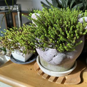 後ろの柱系の子が欲しくて寄せ植えを買ってさっそく独立させちゃいました😅ニョロニョロと成長するのがツボです💕💕名前を忘れてしまいました。どなたかご存知の方いますでしょうか?