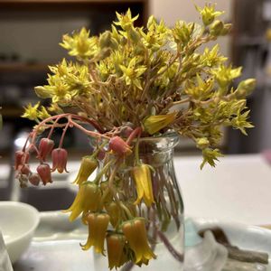 いつの間センペルビウムが花を咲かせていました。可愛いお花💕💕💕でもこれでこの子は星になるのかな、、、🥲