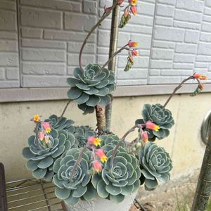 綴化したエケベリアの鯱さん、半分紅葉してるのは良く分かりません😅😅お外に出て気持ち良さそ〜🥰🥰🥰