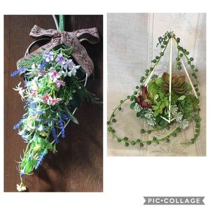 おはようございます☀ 昨日のアーティフィシャルフラワーレッスン お1人は高原をイメージの壁掛け お1人は多肉ちゃんの 壁掛けor置いても良し グリーンネックレスが良い感じ👍 素敵な週末お過ごしください✨
