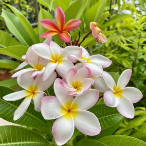 9月20日 今日のお花 🌼❀🏵️🌿プルメリア🌿🏵️❀🌼 別名 シロバナインドソケイ ハワイでは女性の髪飾りやレイに用いられ、ハイビスカスとともに、メジャーな熱帯花木の一つ。 1️⃣2025.9/10 撮影 お友達の鉢植え 2️⃣3️⃣4️⃣5️⃣過去のpicより 🏷️おしゃれな土曜日♪
