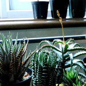 アロエ・ハイブリッド 岐阜に戻ったら、こっちのアロエも花が伸びてた。🌼 まだ小さいのに。