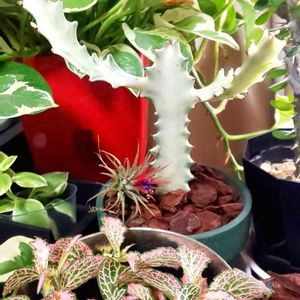 昨日、ポトスライムと一緒にお迎えした子 フィットニア バリエーション ペペロミア デピーナが 瀕死状態で スカスカだったので… 同居させちゃいました✨