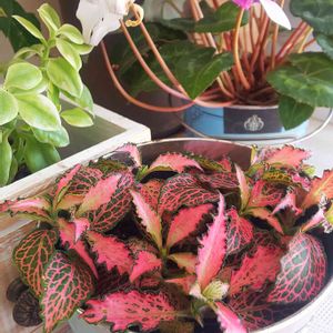 フィットニアのピンクが濃くなってきた(ღ˘ ³˘)。o♡ シクラメンは12月からずっと咲き続けてくれています゚・*:.。. .。.:*・゜