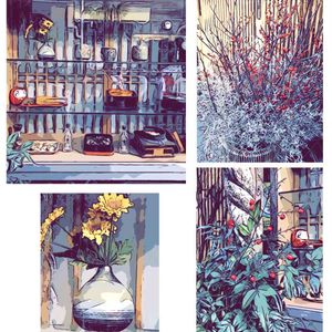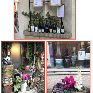 居酒屋さんのお酒のボトルと 植物の相性も良いですネ 左下の写真は焼き鳥屋さんの前で 撮りました いずれも東京、西荻窪