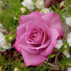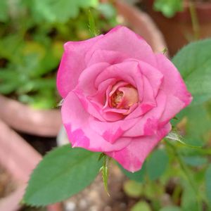 ミニバラ・ラベンダー💜 二株購入して3ヶ月程。 一輪綺麗に咲いてくれました。 う〰️ん?🤔 今後の鉢とバランス悩むなぁ。 沢山の投稿見て 参考にさせて頂きます✨😌✨