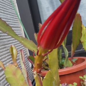 春にお迎えしたクジャクサボテン🦚🌵 最近、みるみる赤くなってきたこの赤い実?みたいなんは、いったいなんなん⁉️ まさか、花芽とかじゃないよね🤔ウ~ン…? ナンゾヤ🙄??