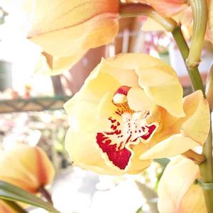 玄関先のシンビジウム✨ 3本🎵みんな開花しました お天気☀️で 嬉しそう