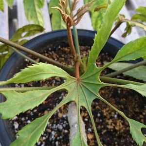 【トレベシア パルマータ】⚡️⚡️⚡️ ハリーポッターになったつもりで 腹から声出して言ってみましょう🧙♀️🧙♀️🧙♀️ こんな勢いのある名前の持主さん(笑) なかなか見かける事がない葉っぱちゃんです❣️ 新芽がぴょこんしていたので盗撮🤩🤩🤩 葉っぱがとって魅力的😍😍😍 切り紙工作で雪の結晶❄️作ったみたいに切り込みが入ります! もはや一枚一枚が芸術品✨ でも、うかつに触るとトゲにヤられます😱😱😱