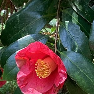 こんにちは🙂↕️ 先週10日(木)、高尾山に行って出会いました〜 真っ赤な【椿❤️】 見事です〜 大きくて😆