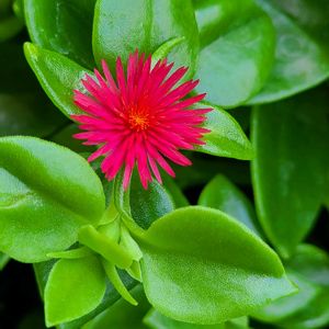 ベビーサンローズ💠 別名 ハナツルソウ ハマミズナ科 🏷️真っ赤な火曜日 🏷️真っ赤な花 🏷️あっ火曜日 🏷️可愛い~♡ 肉厚の葉っぱ🌿 みずみずしいです♡♡♡ 真っ赤な花はマツバギクを小さくした花 可愛い😊