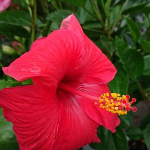 ハイビスカス🌺✨✨ 雨の中ハイビスカスの大きな花が咲きましたヽ(*´▽)ノ♪ このハイビスカスは4年目かなぁ😊🌱