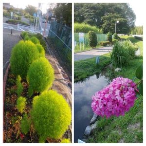 今日の散歩道🚶② コキアがもりもりしてきました🤗💪 秋が楽しみです👍 遊歩道のせせらぎに、空が☁️映りました(^O^)/ 帰省の皆さんや、お出掛けの皆さん🙌 お気を付けて(^O^)/