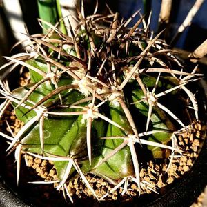 ⛑️⛑️⛑️只今、マンション修繕工事の為全ての植物を室内に入れて8月まで管理中…😅😅😅 暫くは、撮りためた画像をアップしています。…😅 ★★★★★★★★★★★★★★★★★★★★★★★ サボテン科 ディスコカクタス属 トリコルニス(Discocactus tricornis)🐱🐱 水やりで、刺が濡れたりすると赤くなる赤刺のサボテンシリーズを投稿します。😋 🖖🤓第四弾は、ディスコカクタス トリコルニス。 落ち着いた赤黒い刺が、イイ感じで最近のお気に入りです。😋😆😊