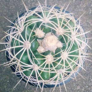 こんばんは! ディスコカクタス:白豹冠 刺が綺麗でギムノのような雰囲気ですが、 白いモフモフ花座が出てきてます!