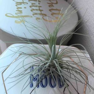 エアープランツその2 この子は全身を覆う細い葉っぱが魅力なので 宙に浮かせたいなあと 盆栽用の針金でスタンドを自作したぞ 後ろは相変わらずの生活感で😁