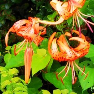 うちの坂の登り口の両側に 今年は沢山のオニユリが咲いてます🎵 去年までは右側にある方牛地蔵さんの前にしかなかったのに、今年は沢山増えて左側にも👀‼️ 木の足元なので、花が下を向いてますが鮮やかなオレンジ色が眼を引きます🎵 梅雨☔️☔️🐌の激しい☔️にも負けず、頑張って咲いてます🎵 去年まではあまり関心はなかったんだけど、とても強そうな姿にひかれます💛 自然の植物の逞しさを感じます🎵 私も明日からまた頑張ろう👊😆🎵