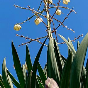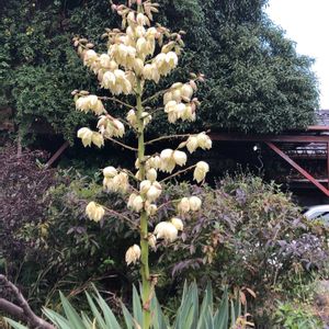 🌳木の花たち アツバキミガヨラン(厚葉君が代蘭) ① 公園などでよく見かけるキミガヨラン 出先の公園で綺麗に咲いているところに出会えました 花が俯いて開ききらないところに趣を感じます (ღ*ˇᴗˇ*) ❀ ② 春と秋に開花しますが 秋のものがやや赤みがかるそうです 虫媒花でこの花だけにつくユッカ蛾がいるそうで、この花の中に産卵するのだとか…(๑¯ㅁ¯๑)💧 この花が咲き終わって倒れたら 地面についた場所から根が出て増える 小株で増える となかなかの繁殖力の持ち主 🏷白い水曜日♡ (さっちゃんさん主宰) 🏷️素敵な出会いに感謝 ☀️ *・゜゚・*:.。..。.:*・🌳✨'・* :.。..。.:*・゜゚・*