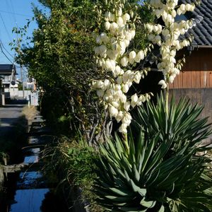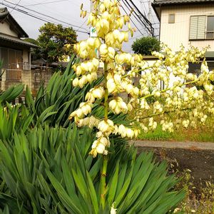 通り道沿いに植えられているアツバキミガヨランです。10本のうち9本が 花を咲かせてます。