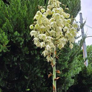 日比谷公園第一花壇の「アツバキミガヨラン」の真白い花が一際目立っている。