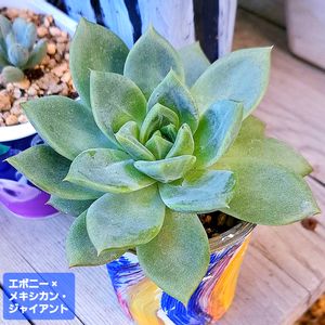 おはようございます🏙😃🌞 爽やかな風の中、朝寝坊をしました✌️😄 エケベリアには厳しい日々が続きますが、 エボニー×メキシカン・ジャイアント💚 @6cm鉢🖌️ 両親の特徴が良く出ている感じですね🎶🇲🇽😄🚩 よい週末を🌀.。o○🌈🌏