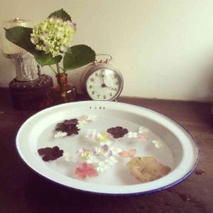 floating flower ① お花が終わってしまう前に 『花手水』風に浮き花にしてみましたー❣️