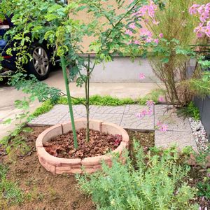 ミモザがこの夏すごく大きくなった! 根元にレンガ調のレンガ(なんて言うんだろ?笑)を埋めて、くるみの殻を敷いてみました。 本当は春に、ヒューケラを根本に沢山植えたけど夏の直射日光にやられて半分枯れちゃった😭😭 やっぱり1日中真夏の日光ガンガン当たる場所はヒューケラにはキツかったようです。