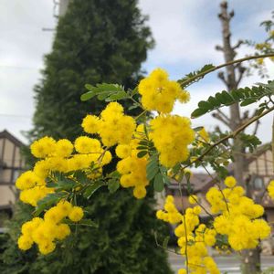 ミモザ スペクタビリス やっと満開になってきました😆😆 この普通のミモザより大きな、黄色いポンポンの集まりがかわいい〜💕💕💕 一昨年地植えにしたので、今年はだいぶたくさん咲いてくれました😍😍 風対策をしっかりしてもっともっと立派な木にしたいなぁ〜😊