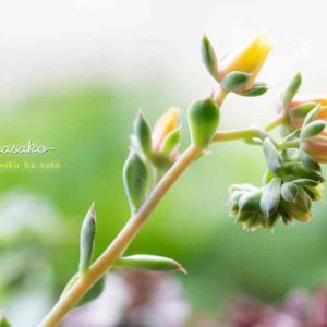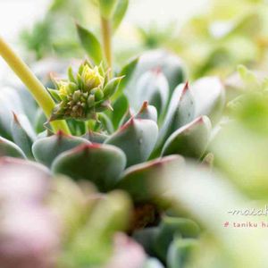 前のpicの写真の反対側には、花芽✨ ハッピーさんは、ハッピーです💓 セダムさんがもりもりなので、写真を撮ったあとカットしました。 中央にも埋もれたハッピーちゃんがいるのでね💕 【masakoの多肉No.29】