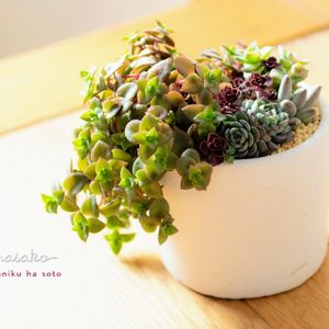 平成最後に紹介した寄せ植えの撮り直し✨ 一度、水をあげて2~3日たったくらいが、 プリっとしていいなと思います😊 もう少ししたら、セダムちゃんがパチパチ、飛び出してくるでしょう😁 晴れたのもあって美しく撮れました☀ 心なしか緑色が濃くなりました。 【masakoの多肉No.29】