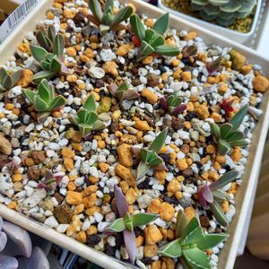 フォーカリア実生 植物屋どーらく産 順調に成育しています。ギザギザが見えてきた苗がチラホラ。 先日の大きな地震で実生の群玉とか魔玉の鉢もろともひっくり返り、大きく育っていたフォーカリアしか救出できませんでした😭 もったいない‼️