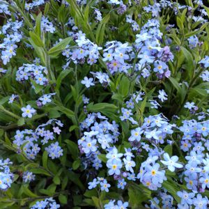 勿忘草🩵が 庭の彼方此方で咲き始めました 心踊る毎日です♪ 勿忘草が好きだから 水色が好きなのか… 水色が好きだから 勿忘草が好きなのか… とにかく水色が好きで 冬生まれの私は 誕生日には水色🩵のセーターを せがんでました 今も水色のセーターが好きです 色白ではないのでニアワナイケド😅