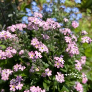ワスレナグサ ピンク と 白 と 青 いつも青だけを迎えてましたが今年は白とピンクも迎えてみました🎶 今がピークのようで賑やかです💕昨年は種を採取しなかったんだけど今年はできたらいいなあ😊