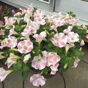 <いつかのある日> こんにちは〜、今日もちょっと早めの更新です。 3枚目のサフィニアはももいろハート。 去年?一昨年?どっちかに育てました。 自分キャラじゃないけど、可愛いサフィニアです。