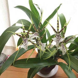 こんにちは〜!今日も後半いってみよ〜! 言葉足らずですいません。 追記します。これは、2017/08/29の画像です。 ブラッシアの開花状態。 ズラーッと並べたいですがなかなかそうは咲いてくれない。 今年の新しいバルブもまだ太ってないので、今年咲くか分かりません