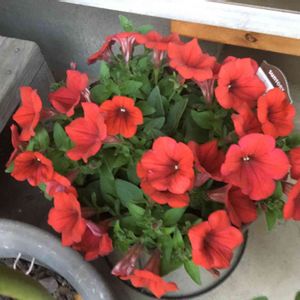 <いつかのある日> 2枚目は赤のサフィニア。 これは去年だか一昨年だかの画像。 花数に特化した品種改良はすごいよね。 毎年2回くらい切り戻して秋までに3回は花を見ます。 ですが、今年は買いませんでした。 零れ種の実生だけかき集めておきました。