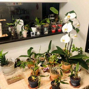 室内に取り込み1週間過ぎ胡蝶蘭に花芽が付き初めました💕葉焼けの失敗続きでしたが5株にちょこんと💕 花芽付きで買ったミディ胡蝶蘭3株は蕾が目立ってきました💕 ミニカトレア リトルプリンセスは朝、美しい香りのドームが出来ます💕 ミニ胡蝶蘭パープルジェムは2ヶ月以上咲いてなかなか頑張ってます💕 胡蝶蘭大輪達の花茎は80センチにもなるので花茎伸ばし始めると大騒動です💦 でも綺麗なので家族も楽しみにしてて許されてます🤣 あと少し外にあるのも取り込むと我が家はもう飽和状態です💦