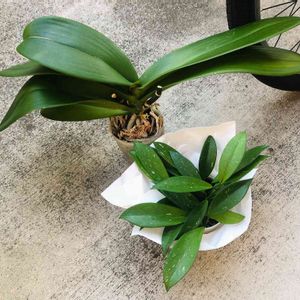 花咲終わりのカトレア やっと今日植え替えできました✨ セールで買った子は新芽二つ同時成長している、 楽しみです♪♪♪