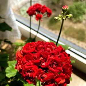 我が家のゼラニウムたち♬ バラ咲き〜アイビーかわゆすな色合いにドキュンどす😆🫰 ずっと咲き続く真っ赤なゼラニウム❤️見てるだけで燃えます〜🔥😆