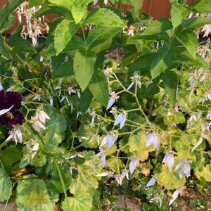 *.❀ 薄曇りかな…って 思っていたら雲は厚いものの 晴れてきました☀️ キキョウ〜 たくさんお花を咲かせてくれました💜 (手前の小さなお花はかすみ草ジプシー💓)