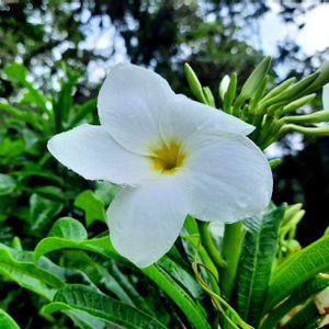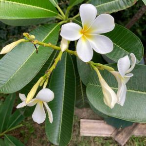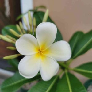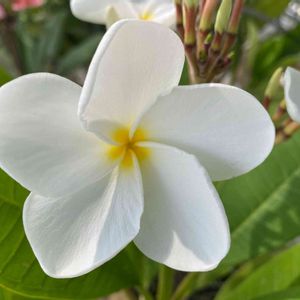 プルメリア シンガポールホワイト咲きました❣ 先日蕾付きをゲットしたコです😅 花弁の形がカワイイ💕
