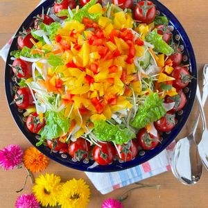 サラダ🥗 週に3回は大きなボウルに サラダの作り置きしてます✨ 忙しい時にこのサラダがあると 助かります。 プランターで育てている サンチュ🥬をメインに スーパーの 大根、きゅうり、にんじん、新玉ねぎ 水菜など入れてます。 その時の気分でキヌアや海藻なども。