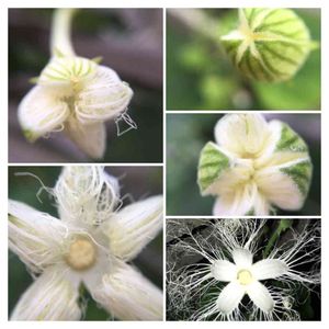 今日のお花🌿カラスウリ🌿烏瓜 ウリ科カラスウリ属のつる性多年草 雌雄異株 去年、今年とあまりにも暑くて、カラスウリの花を撮るために出かける気分になれず、古い写真です😅💦 ①めばな 2021.7.31撮影 ②おばな 2022.7.17撮影 ③果実 2024.10.22撮影