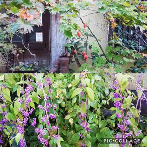 風情のある店先🍁 夕方、女将さんが🌾 植木に水をまいていた。🌳